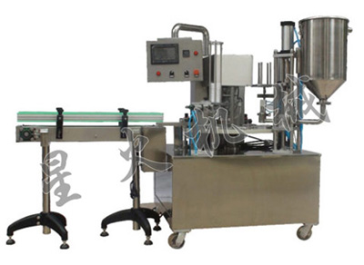 轉(zhuǎn)盤式全自動灌裝旋蓋機采用德國FESTO氣動控制系統(tǒng),全套日產(chǎn)可編程控制器、光電、溫控、無級調(diào)速系統(tǒng)。自動完成上杯、加蓋、灌裝、封口、打碼、切 膜、檢瓶等動作。包裝過程無噴濺,無泄漏。 包裝產(chǎn)品美觀大方。該機適用于火鍋底料、米酒、果凍、冰淇淋等食品飲料的杯狀(盒狀)自動灌裝封蓋。